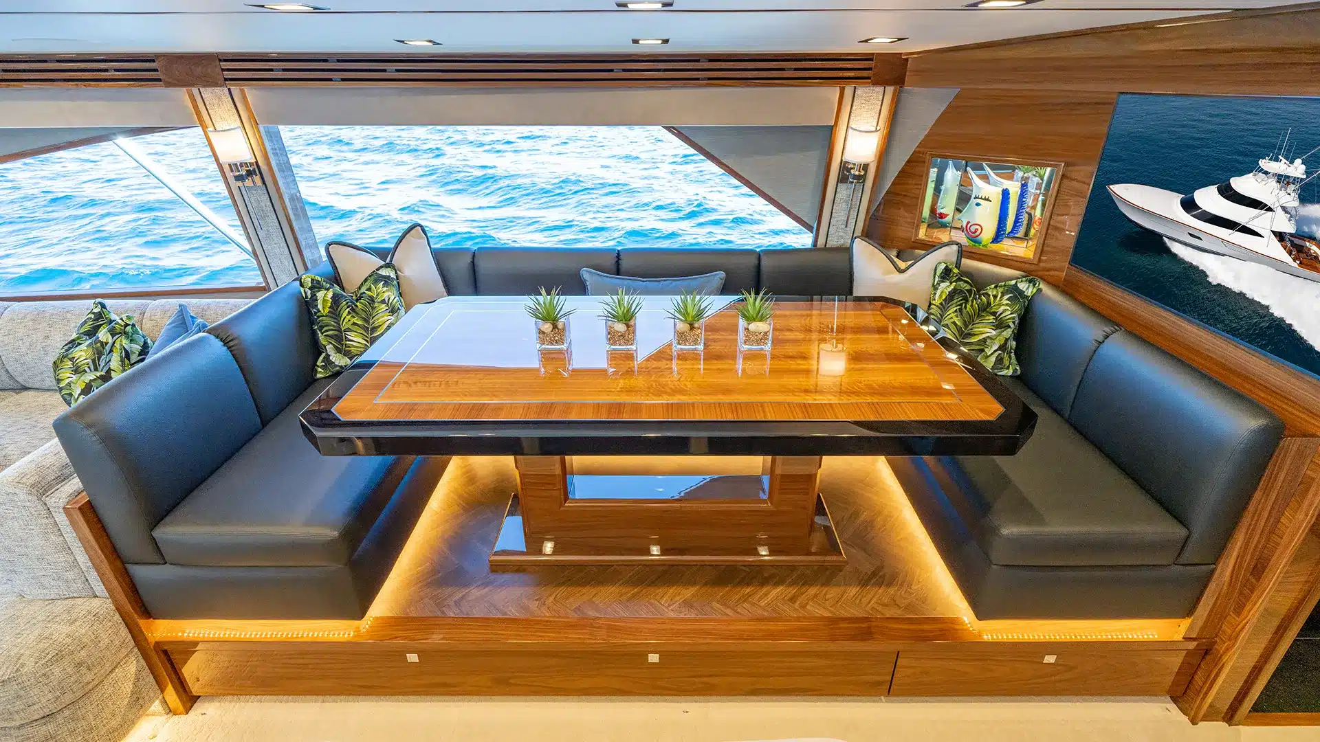 Much like the outgoing 92, the new 90 will feature a two-level mezzanine. However, all seating will face aft as opposed to the 92’s forward facing settee. This update is based on input from Viking 92 owners and the realization that owners and guests want to face the action – the cockpit.